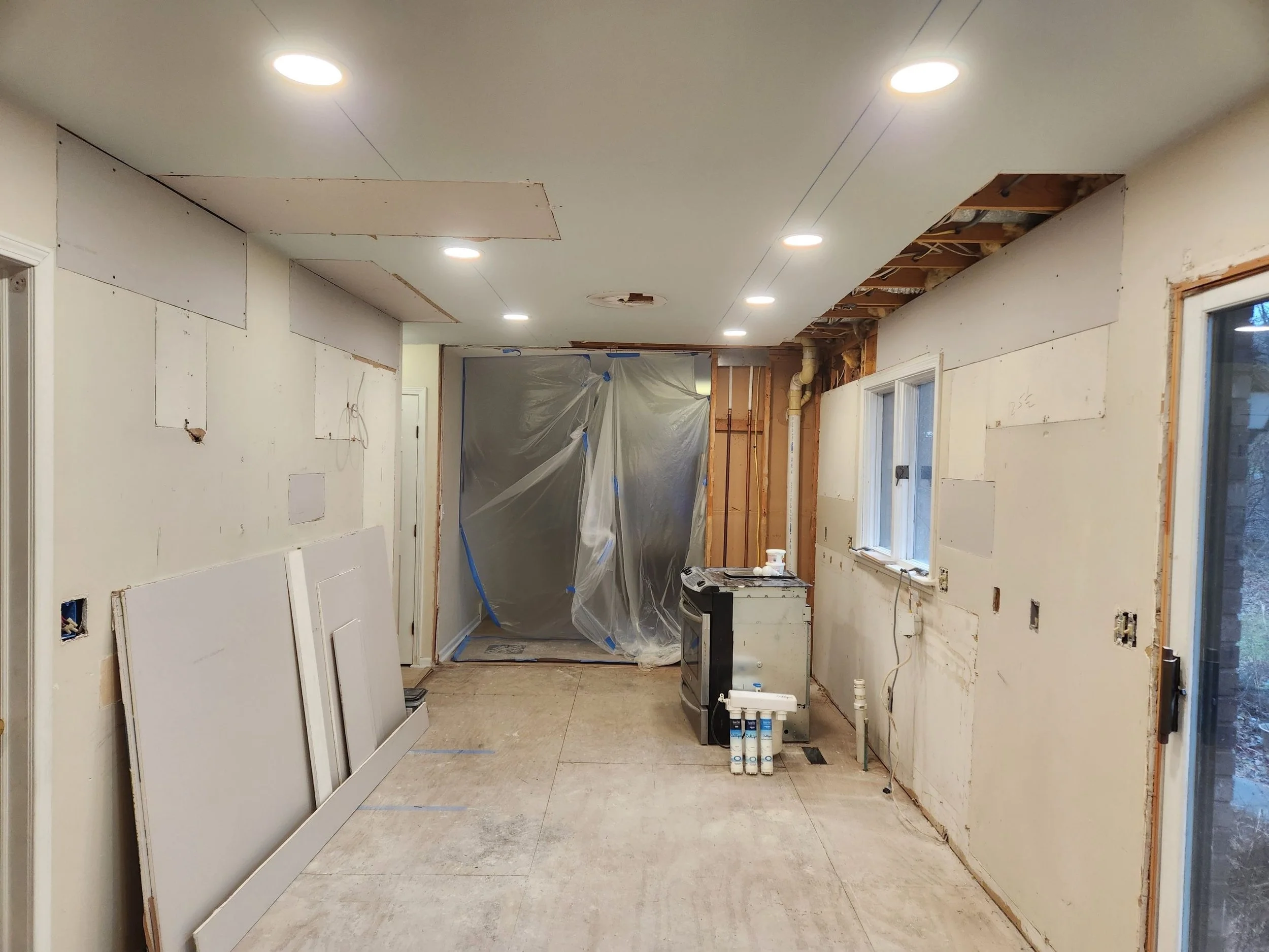 /Chris Childs and the professional team at Tri-County Builders just proudly completed a major kitchen remodeling project in Ann Arbor. Once construction started, the complete project from demo to infrastructure updates to flooring, cabinet installation, painting, and completion took approximately six weeks. We literally changed everything (except the kitchen sink) for this complete remodeling project.