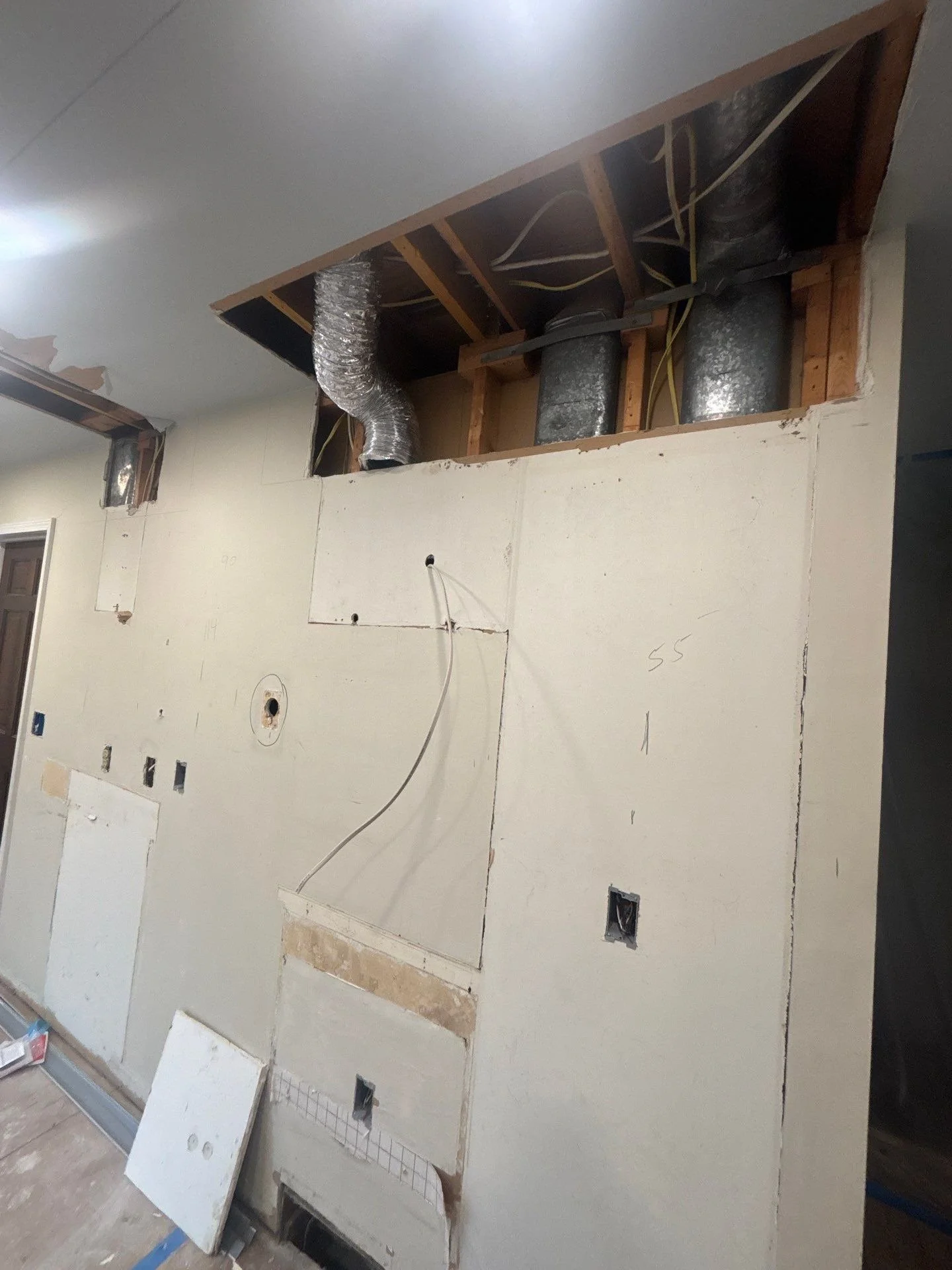 This next batch of photos shows the work in progress, including demo, infrastructure improvements, and initial installation of cabinets.