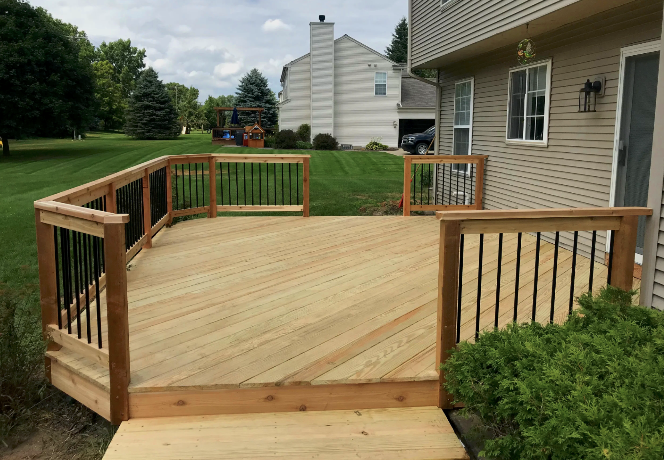 In our consultation, we will discuss the pros and cons of composite Trex decks versus Cedar or Wolmanized wood. Other options are paving brick. The consultation time is very important in helping us learn about your needs and goals.