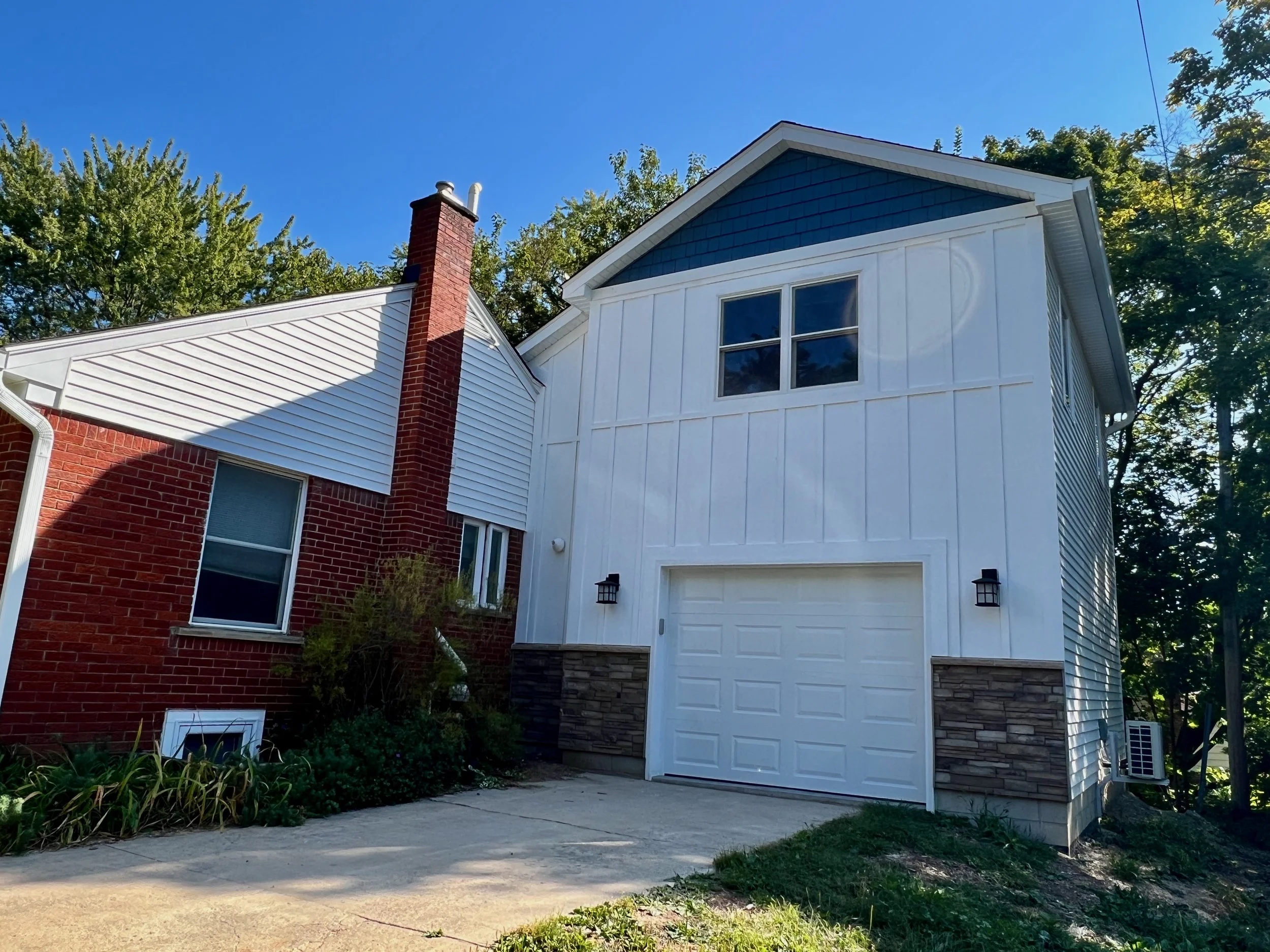 View our gallery to see the completed work of our recent two-story addition, including garage, mud room, large room, office, storage and bathroom. We can work with you on your specifications and your budget.