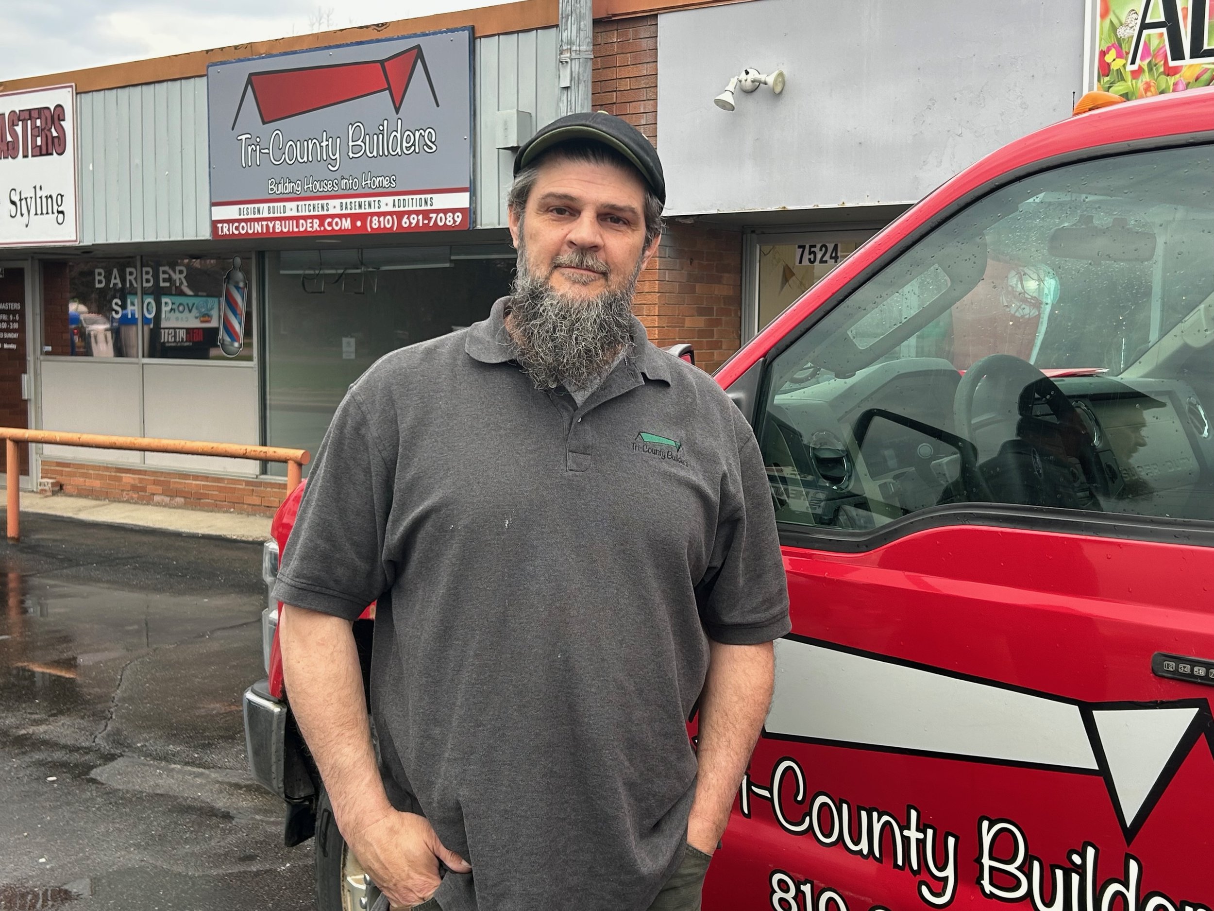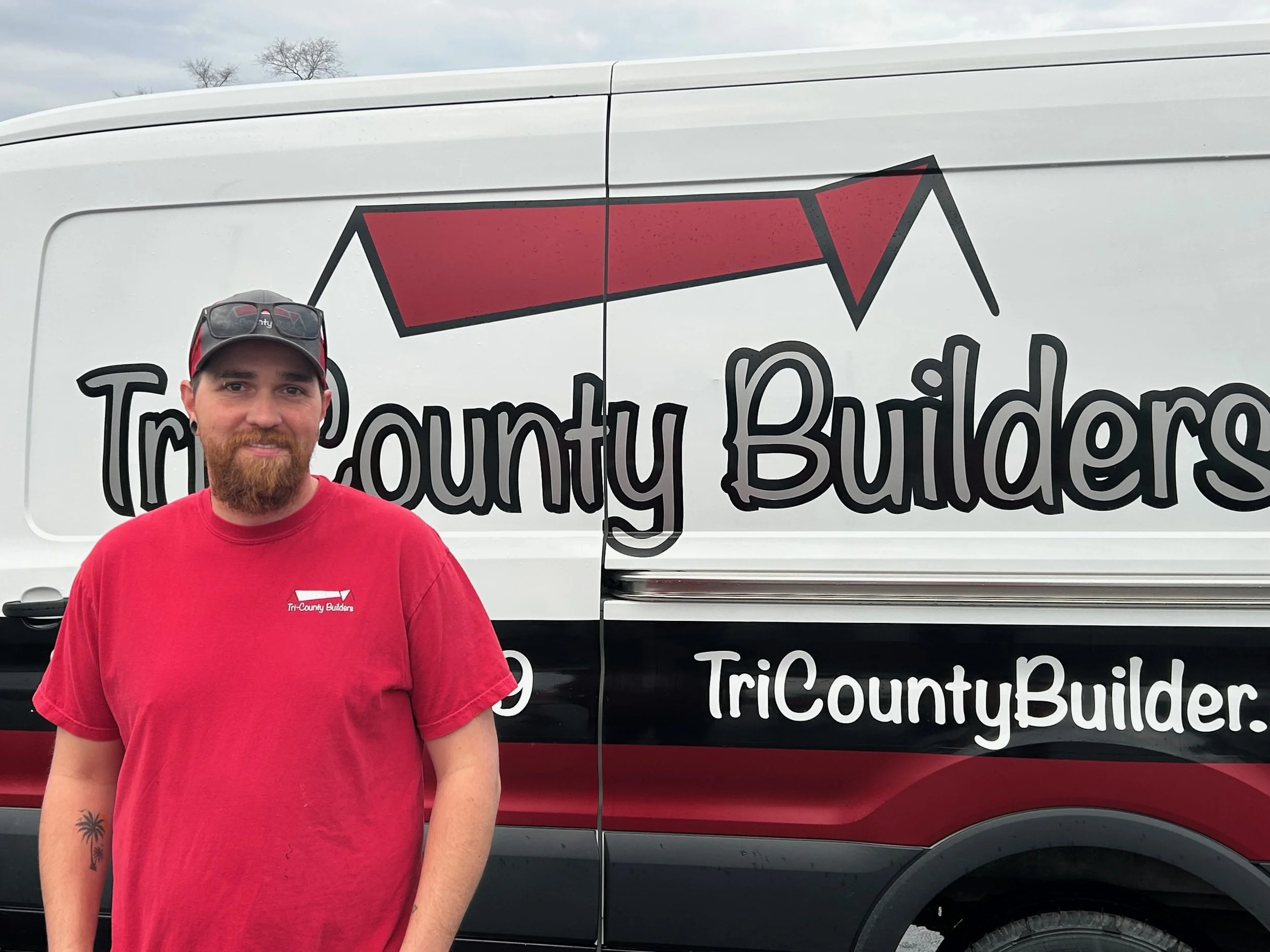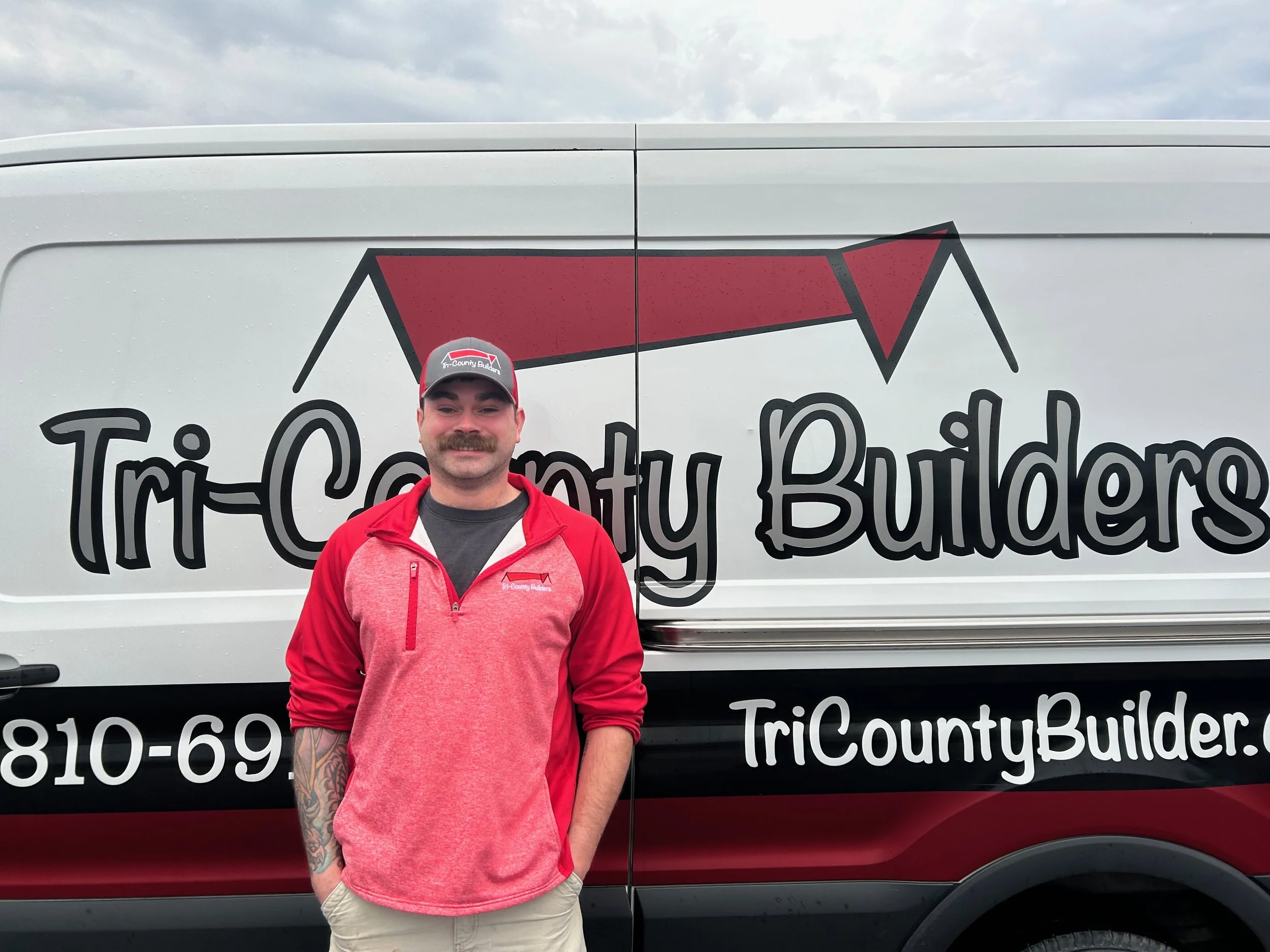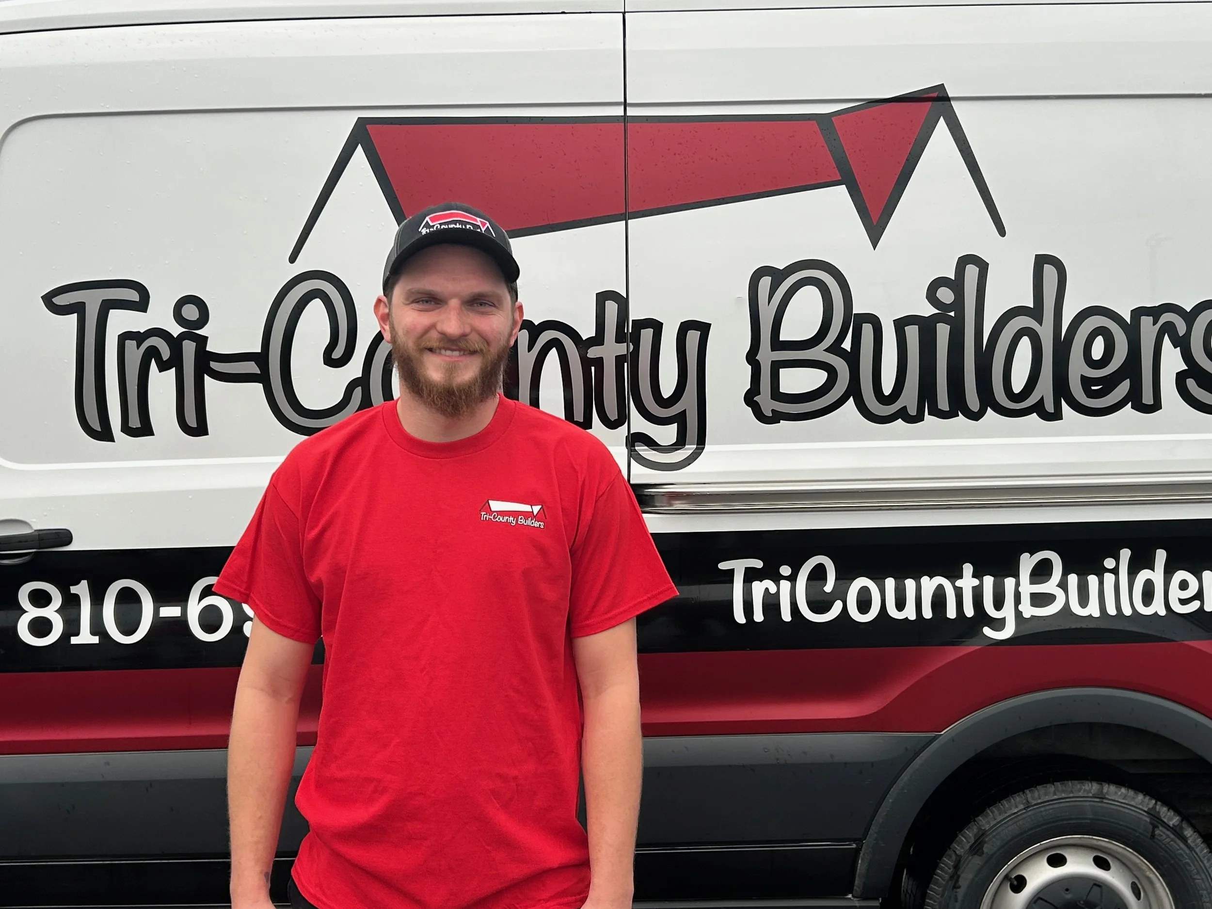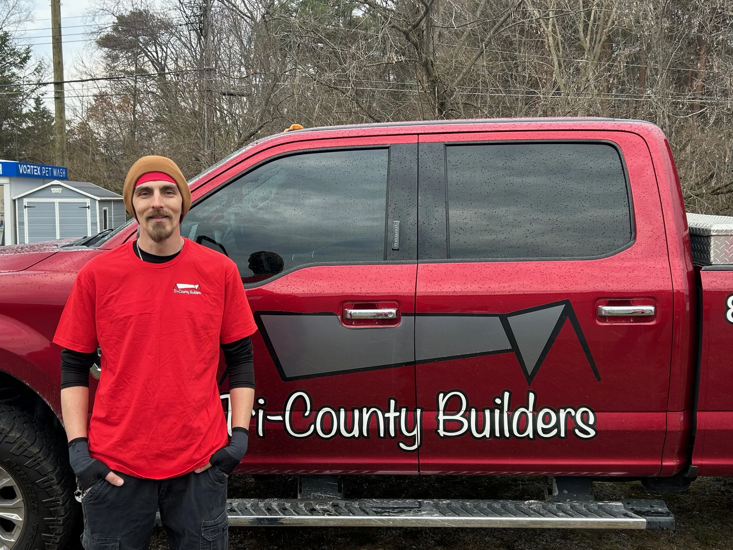 Mike Vine- Carpenter. Mike came to Tri-County Builders with knowledge of siding and exterior finishes. Since then, he has expanded his knowledge to framing, trim carpentry, and tile. His favorite thing to do is tile, and he has become our lead tile installer! When Mike’s not working, he loves to spend time with his daughter and attend concerts with friends and family.